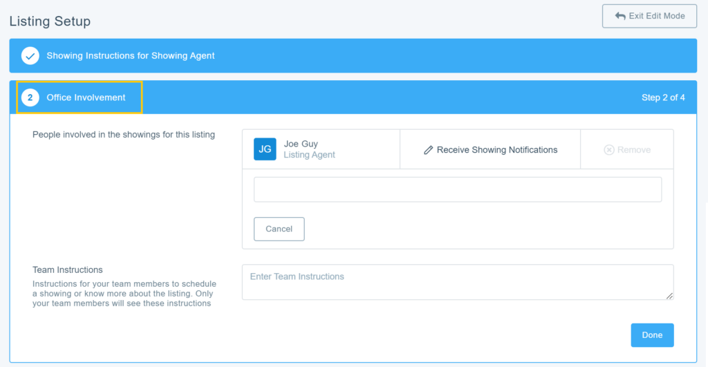 Click here for detailed instructions on how to add a team member to a listing to help manage showings.