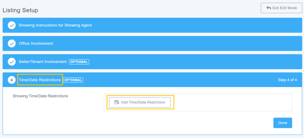 This tool is used to block out times, dates, and/or specific days of the week when the property cannot be shown. When enabled, other agents attempting to request a showing on your listing will see any blocked out times as “unavailable” and will not be able to send you a showing appointment request for those times.
