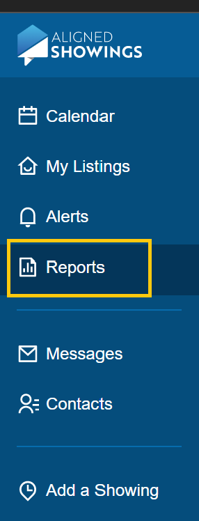 Click on the Reports menu on the left side of the page within Aligned Showings.