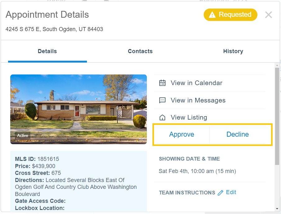 - Approved: The showing request has been approved by the listing agent or team.