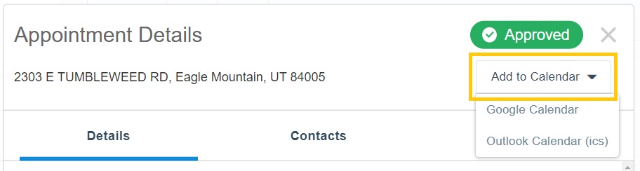Yes. To add a singular showing appointment to your calendar (Google Calendar or Outlook), click on an approved showing on your calendar in Aligned Showings, and click on More Details. Click on Add to Calendar, then choose the calendar type. Please know, if you are opted-in to email notifications for Aligned Showings, and depending on your email provider and email settings, approved appointments may automatically be added to your personal calendar.