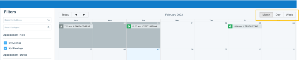 - My Showings will filter your calendar so only showing requests that you have submitted on other agents’ listings will be displayed on the calendar.