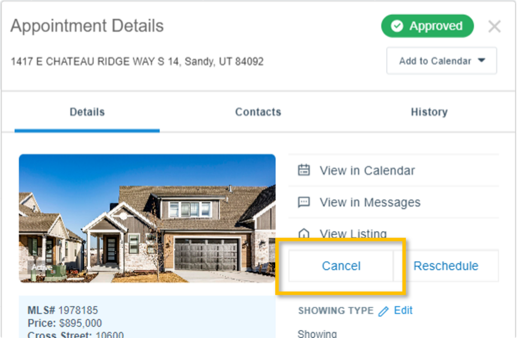 Where Can I Cancel a Showing Request?
