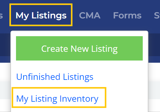 1. Click on My Listings from the main navigation menu within the MLS, then My Listing Inventory.
