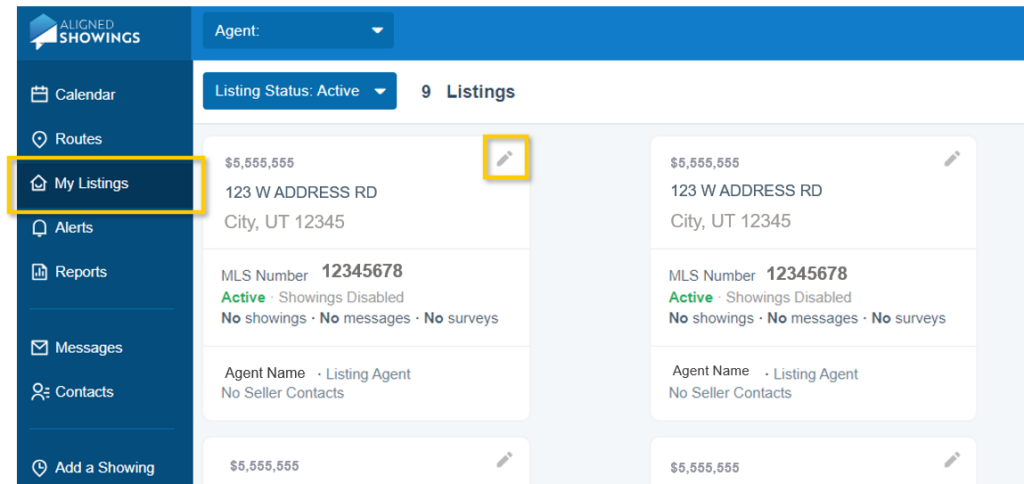 1. Navigate to My Listings and select the Edit icon on the specific listing.