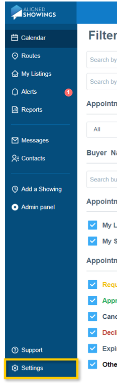 Below are the steps to update your notification preferences in Aligned Showings: