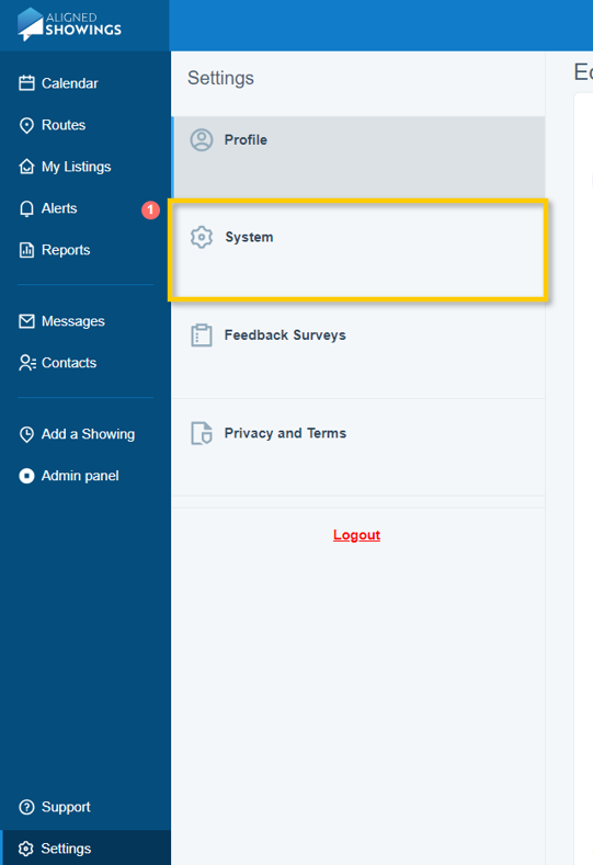 1. Click the Aligned Showings logo that appears on the left side of the MLS homepage to login to your Aligned Showings account.