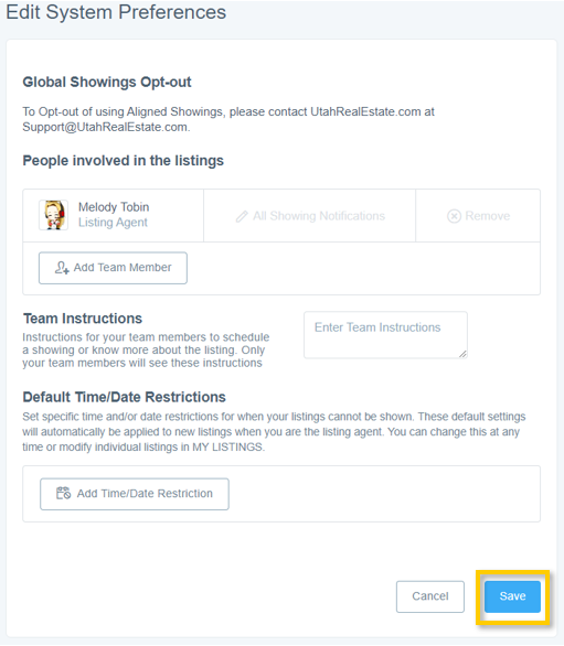 6. Update any other team member preferences and Team Instructions then select Save to ensure changes are implemented.