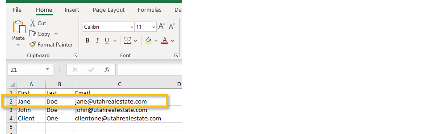A comma-separated values (CSV) file is required to import your contacts into the MLS Client Manager. Unless you export your contacts from Gmail, Yahoo, Outlook, or Hotmail, you will need to create a custom CSV of your contacts.