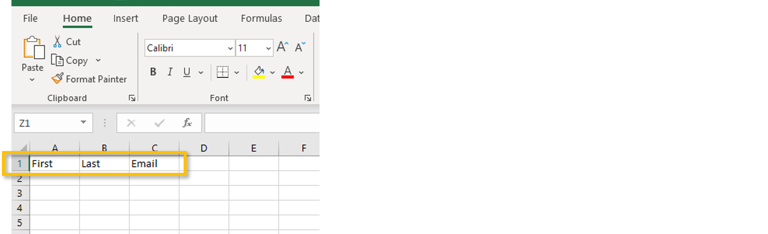 A custom CSV can most easily be created using a spreadsheet program. The steps below are for creating a custom CSV using Microsoft Excel. However, similar steps can be used to create a CSV file with a free spreadsheet program, such as Google Sheets.