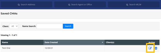 - Then, select the Edit icon next to any one of your Saved CMAs.