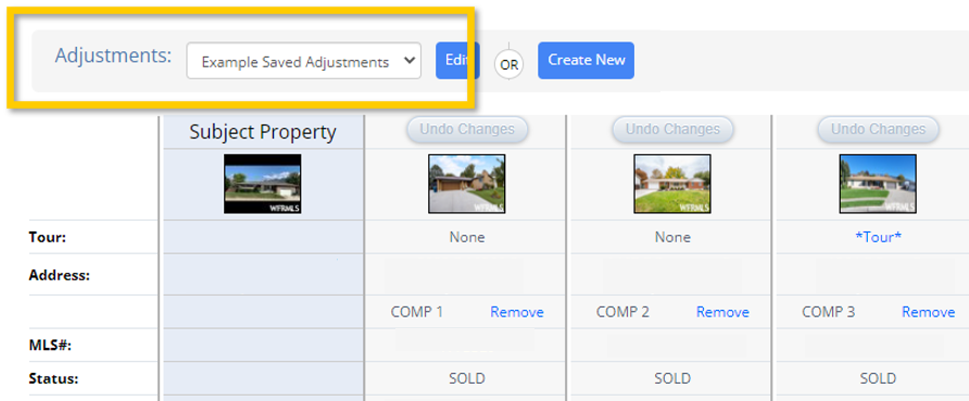 Step 2. Once in a CMA Report, select the Create New option that appears next to the Adjustment drop down menu.