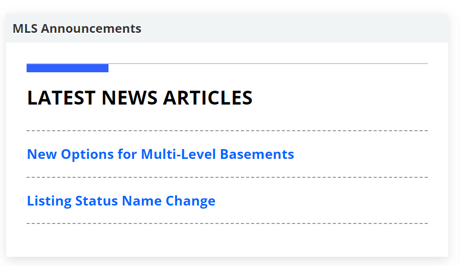 • The MLS Announcements Widget is where you can find information about recent and upcoming changes to the MLS system, which includes links to MLS News items related to such changes.