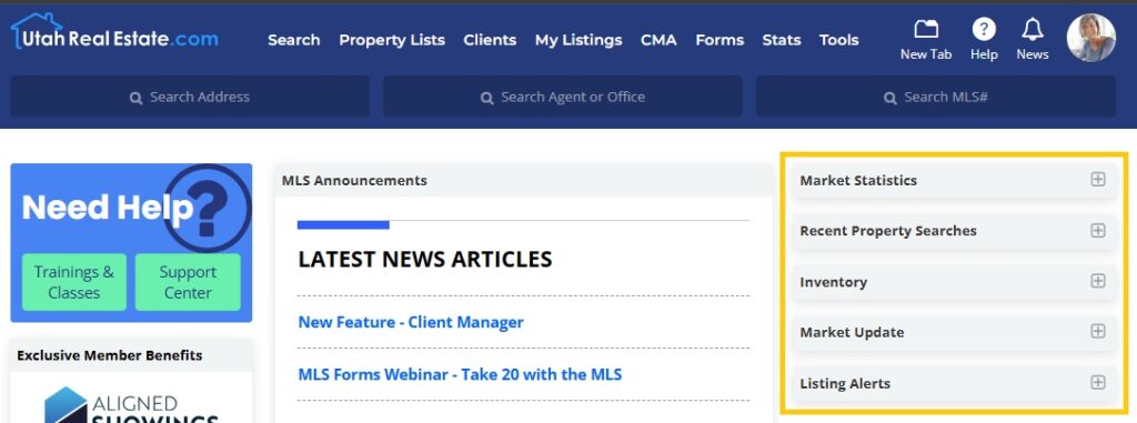 • The Exclusive Member Benefits Widget contains links to UtahRealEstate.com’s partner products, which include various third party products that are included in your UtahRealEstate.com membership at no additional charge.