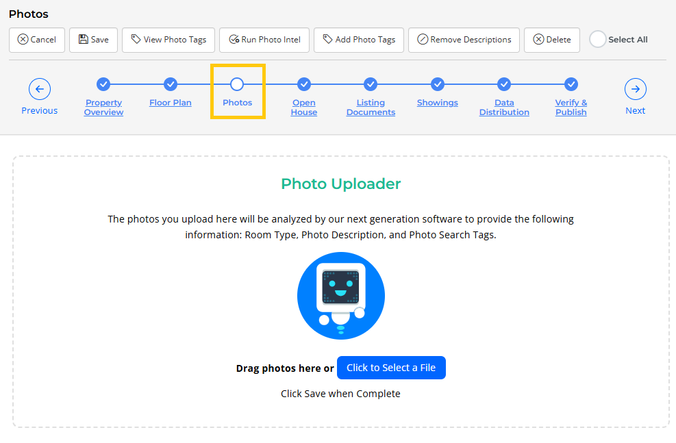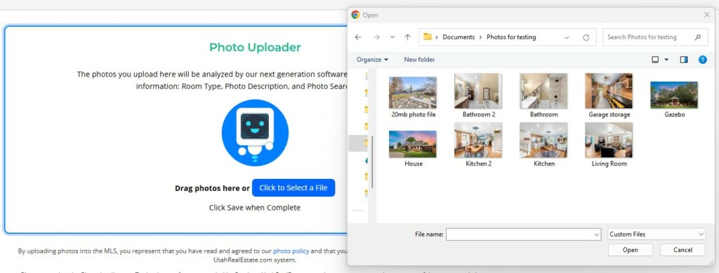 Photo Upload Page During Listing Input:
