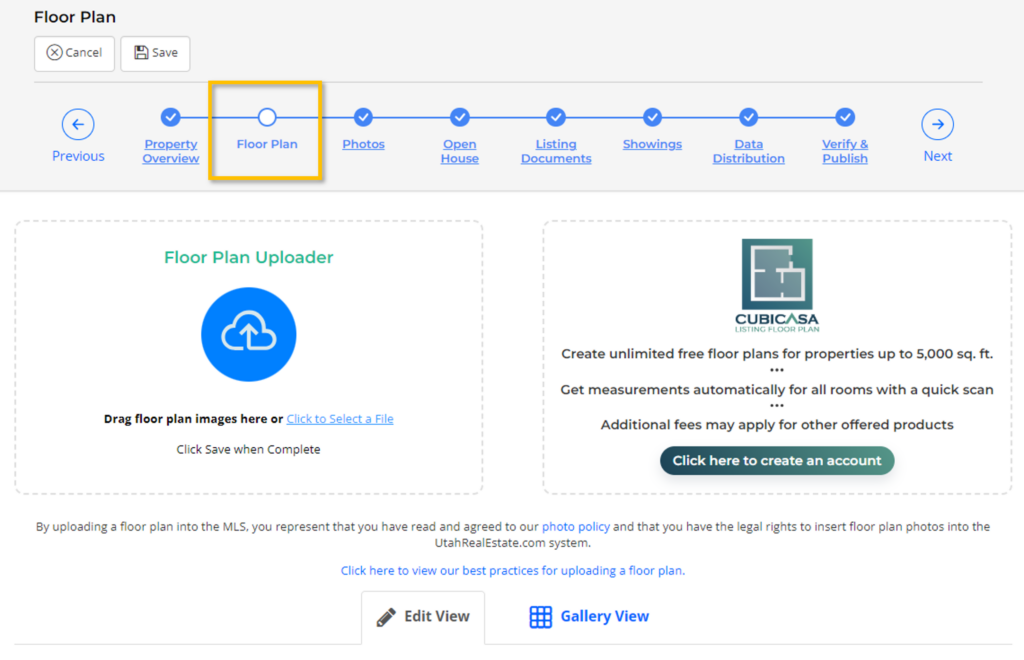 Adding a floor plan to your listing is simple and begins in the Floor Plan step when entering or editing a listing in the MLS.