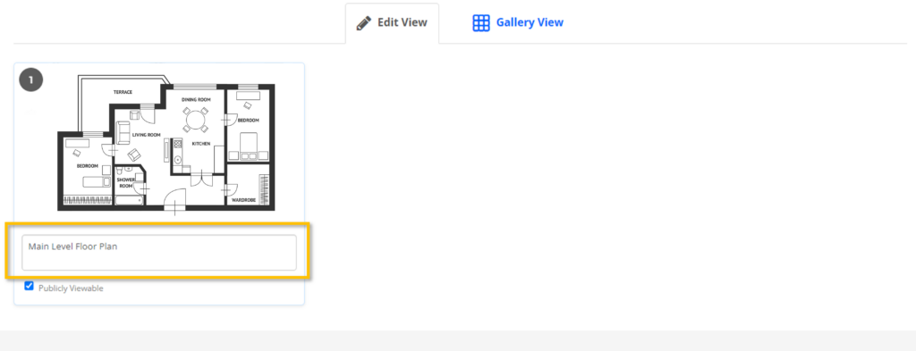 After uploading, the floor plan will appear below the Floor Plan Uploader in the Edit View section.