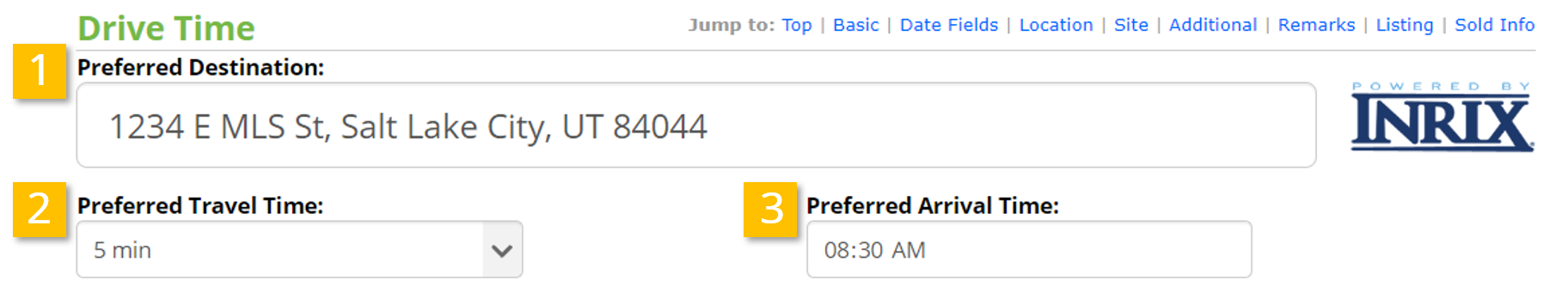 Drive Time, powered by Inrix, is the ability to search for residential properties within a certain commute time of any address (ie. the address of the buyer’s work or school).