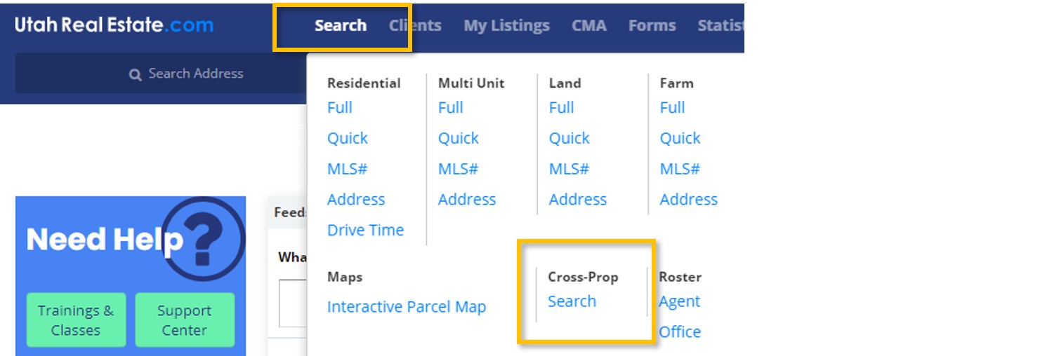 1. Select the Search option from the main navigation menu, then under the Cross-Prop section, select Cross-Prop Search.