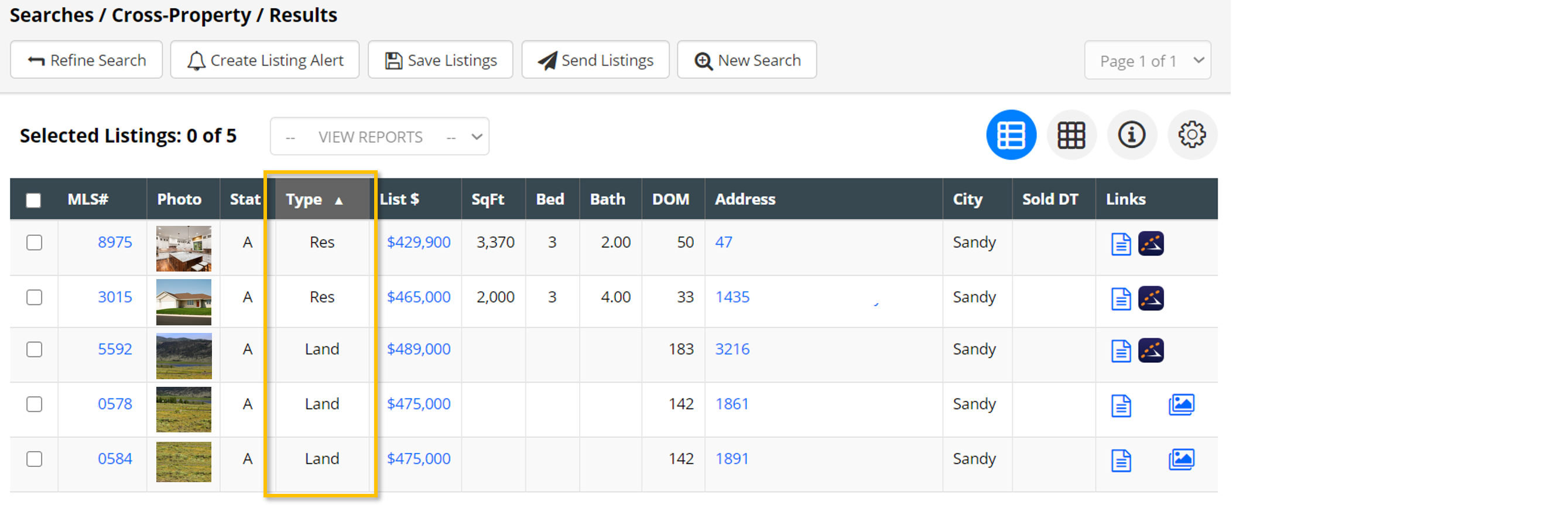 A cross-property search allows users to conduct a single listing search that spans multiple property classes (i.e. Residential, Land, Commercial, etc.). When conducting a cross property search, we recommend searching by address or using the map.