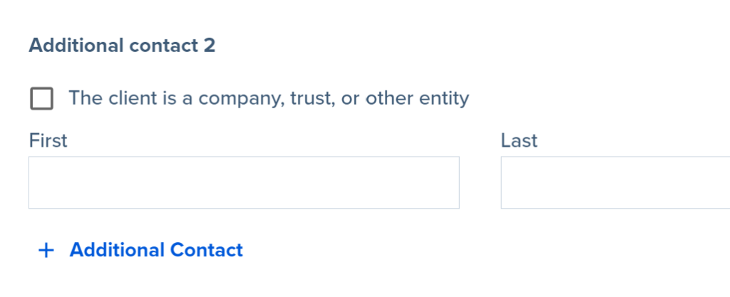 2. When creating a file, be sure to add all clients that need to either sign or be sent a copy of the signed documents. Add additional clients by clicking on +Additional Contact.