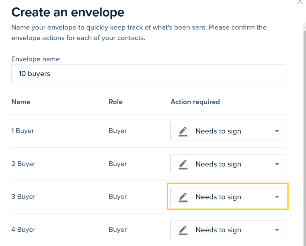 4. Make sure to select the “Needs to sign” option for all people from the client list who need to sign the document[s], and click Next.