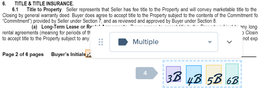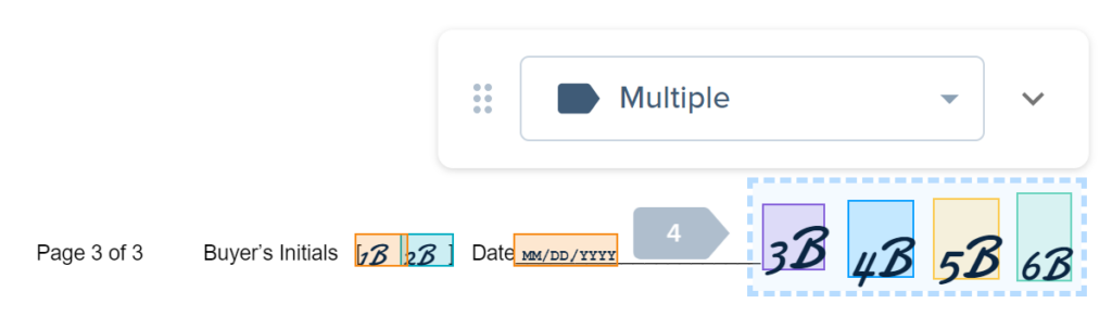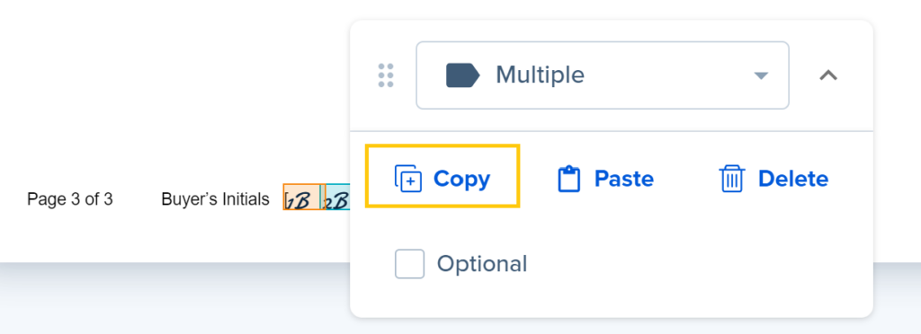 When adding signature or initial blocks for more than one signer, you can create the first set of signature or initial blocks, then copy and paste them to another page.
