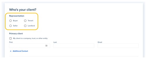 2. Select the capacity in which you are representing this client (buyer, seller, etc.).