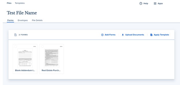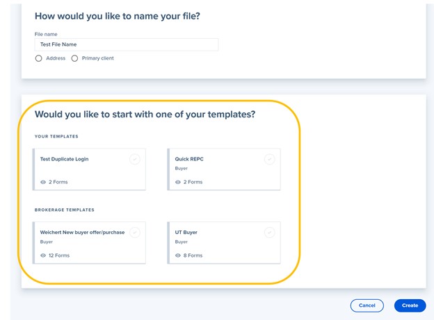 6. Optional Step: If you previously created a forms template (i.e. a packet with multiple forms that you create and save for repeated use), this is the step where you would select the specific forms pack template that you want to apply to this file.