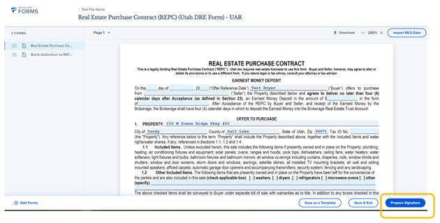 Forms: SkySlope Forms is a digital forms preparation tool that integrates with UtahRealEstate.com and includes the following features: