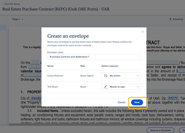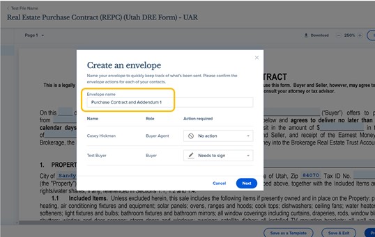 14. You will then be prompted to create a name for the specific group or set of forms that you are sending out for signature, which is referred to in SkySlope as a Forms Envelope. You will want to create a unique name for each Forms Envelope you create, and you may want to consider a name related to the stage of the transaction associated with the set of forms you are sending (For example: Initial Offer, or Counteroffer 1).